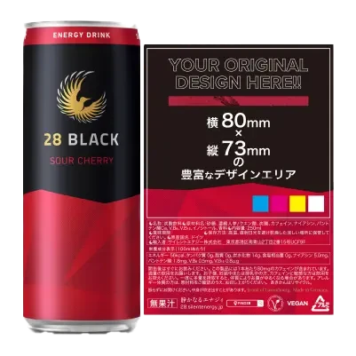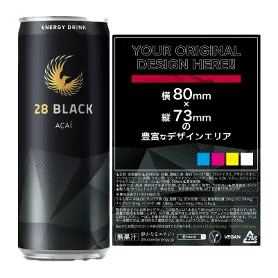 28 BLACKオリジナルラベルエナジィのデザインデータ作成用テンプレートをダウンロードいただけます。